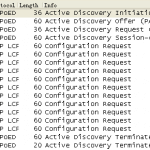 这是出现错误619时,抓的包。 该用户反映开机,第一次连接能连上。但是只能上QQ,网页打不开。断开再连,就是619. PPPoe的发现阶段(Discovery Stage)分为四个过程:PADI PADO PADR PADS。从上图中可以看出,四个过程都进行完毕。进入到PPPoe的回话(Session stage)阶段是时出现了问题。 下面是一个以太帧: 在pppoe中类型字段0x8863 发现阶段(Discovery Stage) 0x8864会话阶段 (PPP Session Stage). 以PADI帧为例来说一下: ff:ff:ff:ff:ff:ff 6个字节的目标地址 00:25:11:12:aa:84 6个字节的源地址。接着是2个字节的类型字段0x8863 表明还在发现阶段。剩下的就是pppoe的净载,在rfc2516是这样定义的: 11这个字节的前4个比特和后四个比特都为0x1这是这个版本的pppoe定义的。09 code字段代表是个PADI包。SESSION_ID 两个字节,在发现阶段的前3个包都为0x0000,在PADS包中,将会有给出这个SESSION_ID。本次实例中为0x0dca。 LENGTH字段有2个字节,仅仅包含后面payload的长度。payload 包含0个或者多个TAGs。本例中0x0103 代表Host-Uniq 。详情请查阅rfc2516。 到了第5个包,也就是进入了会话阶段。payload中也就是包含了ppp协议的一些东西了。Access Concentrator 在发送了11个请求包后,没有得到恢复,接着就发送了PADT。主机也回复了一个PADT。电脑也就是显示619了。 主机为什么没有回复ppp lcf 包呢,这也就是问题所在。 重装系统后,问题暂时没有找到答案。